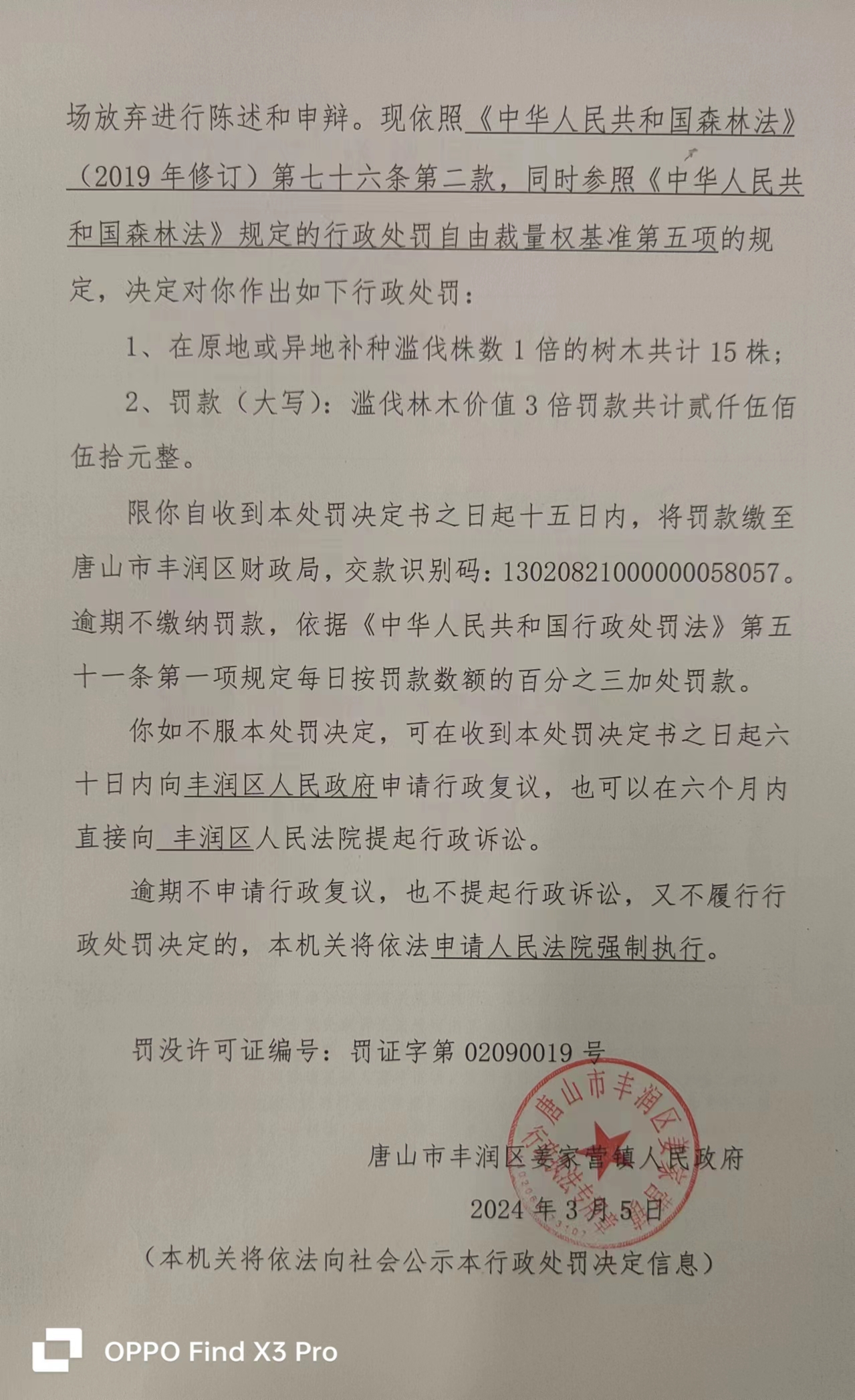 姜家营镇行政处罚公示 丰姜罚决【2024】2号