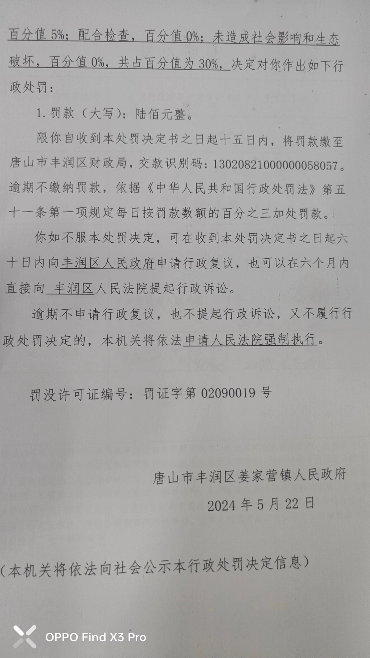 姜家营镇行政处罚公示 丰姜罚决【2024】09号