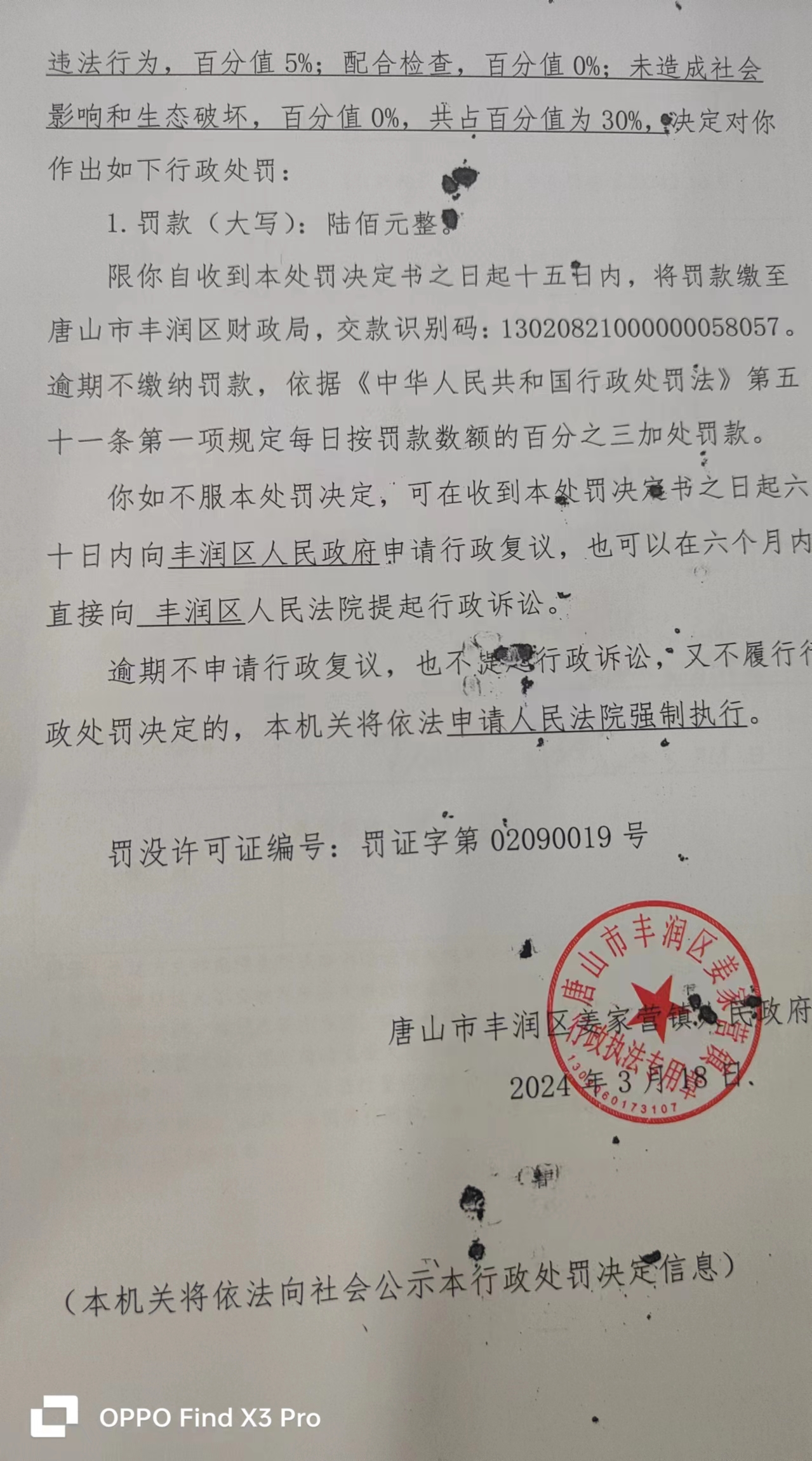 姜家营镇行政处罚公示 丰姜罚决【2024】10号