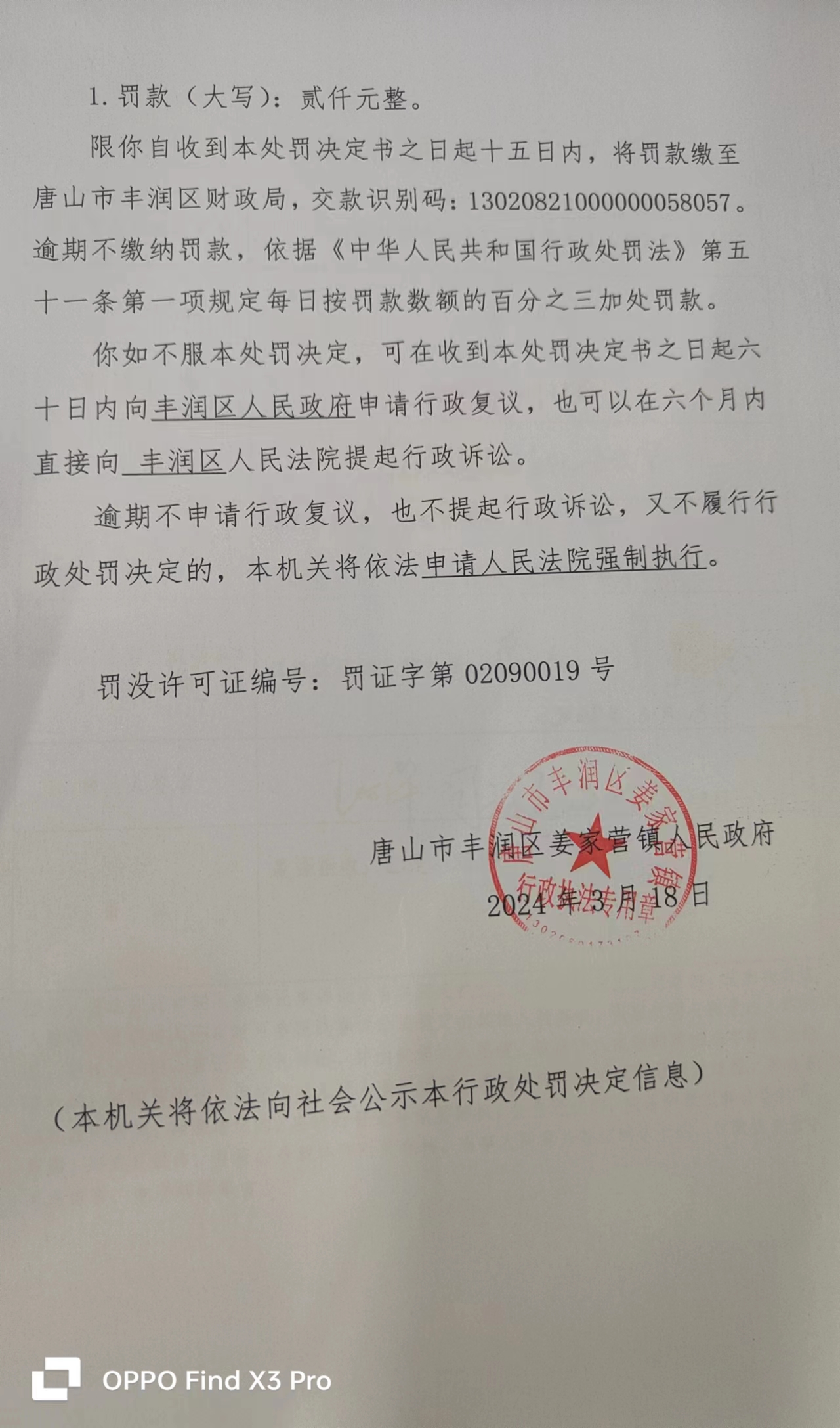 姜家营镇行政处罚公示 丰姜罚决【2024】12号