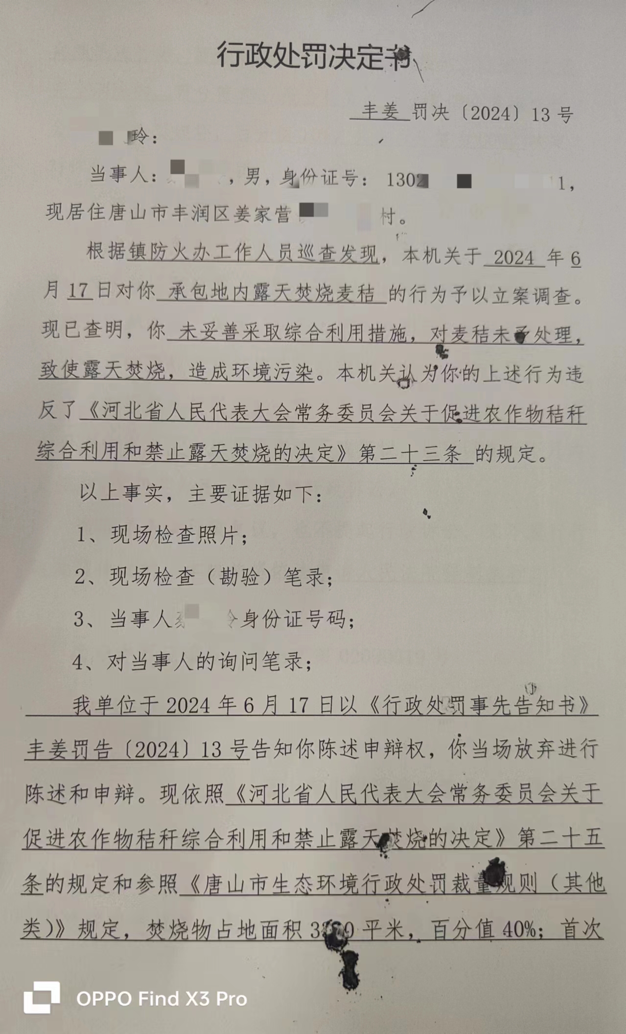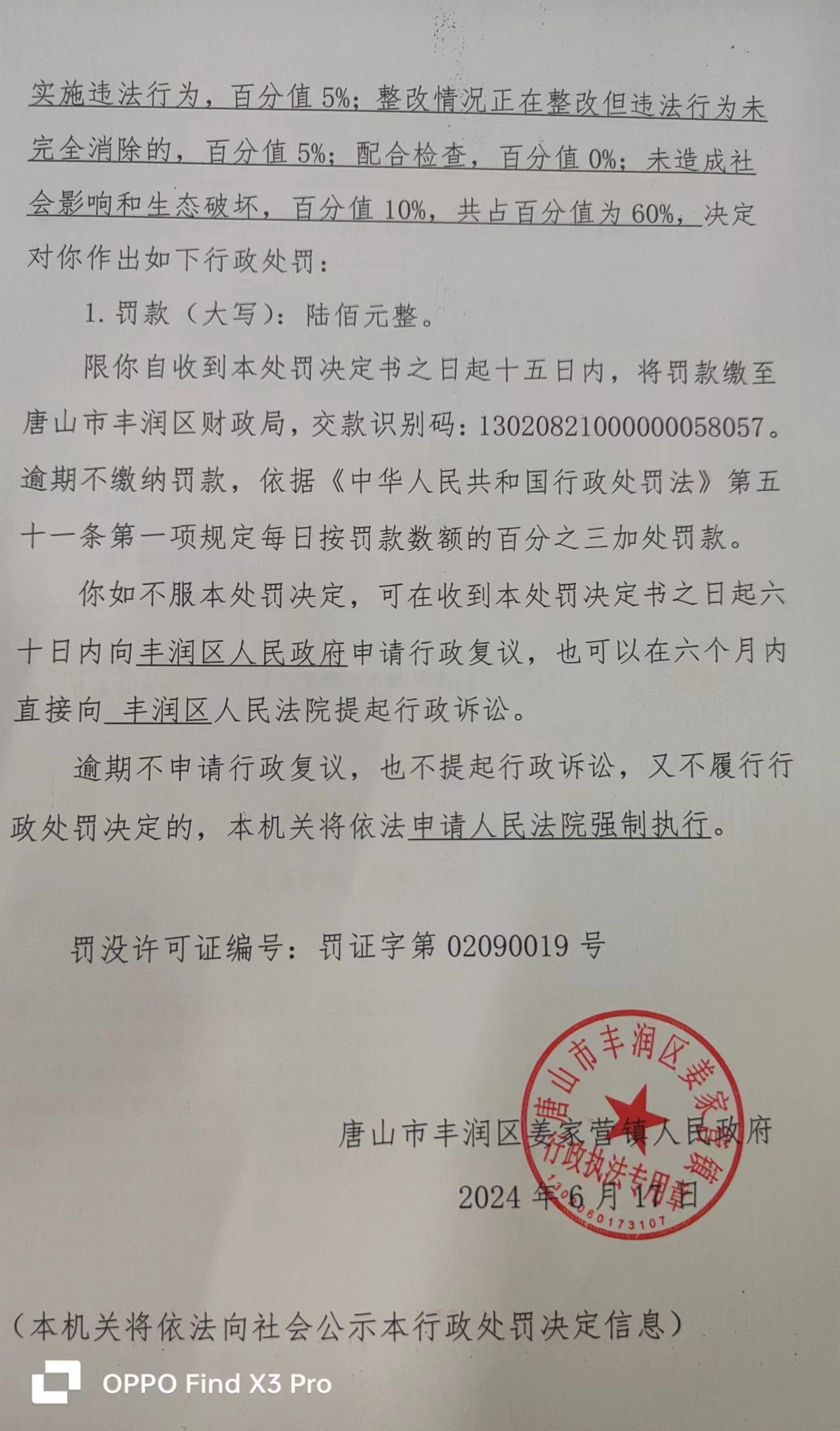姜家营镇行政处罚公示 丰姜罚决【2024】13号