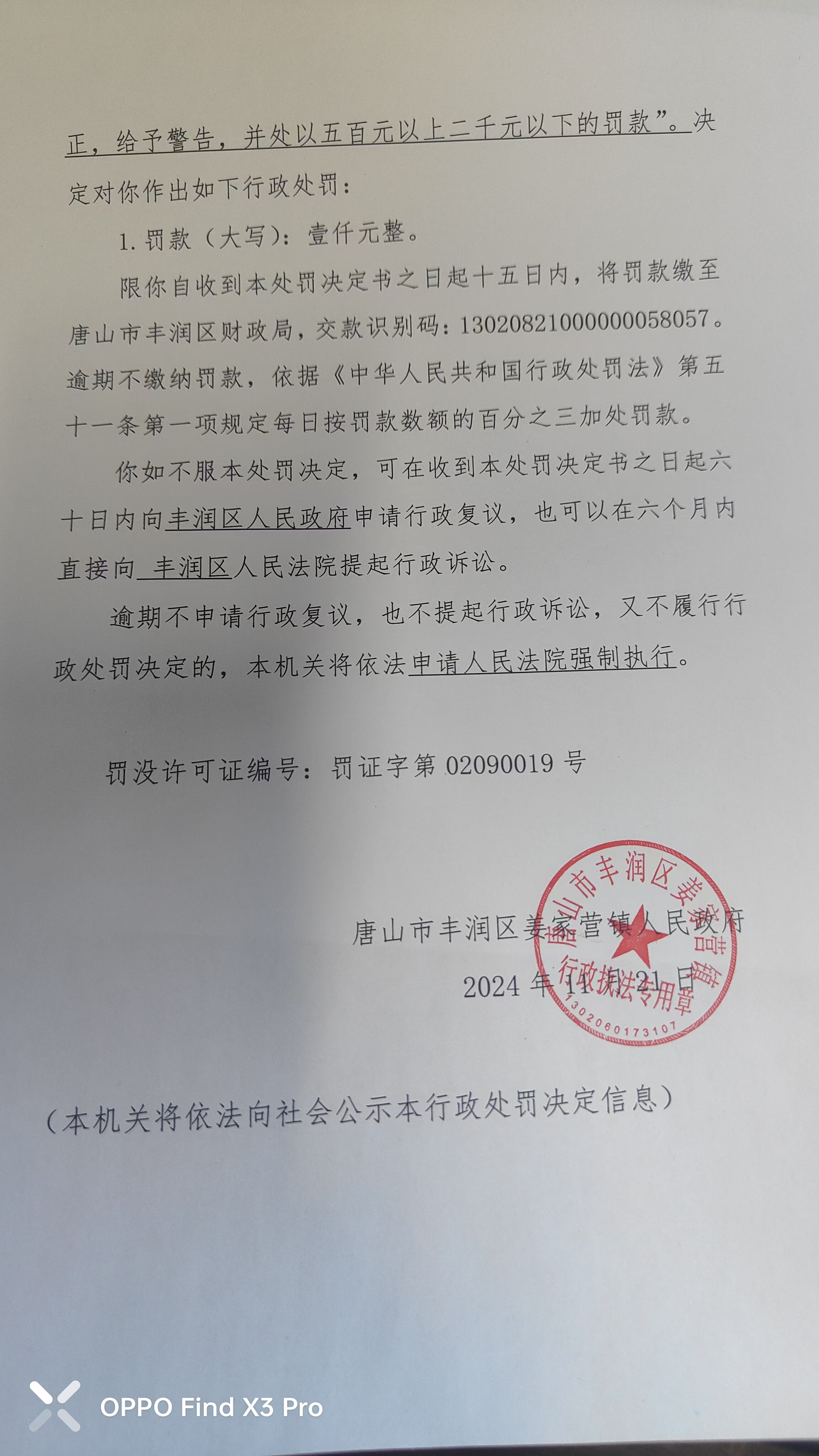 姜家营镇行政处罚公示 丰姜罚决【2024】19号