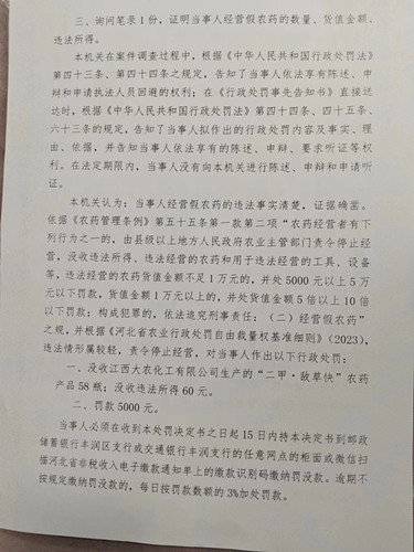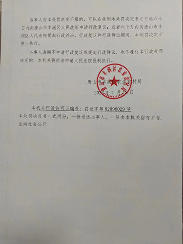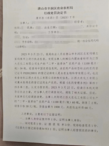 唐山市丰润区农业农村局唐丰农(农药)罚【2023】7号