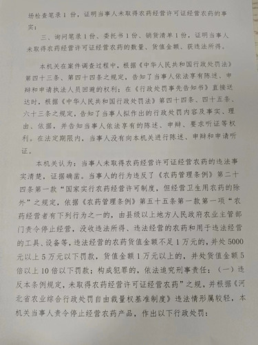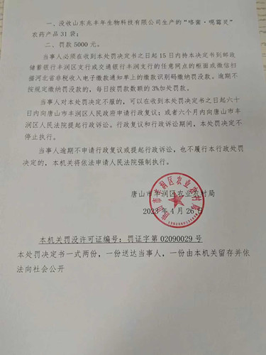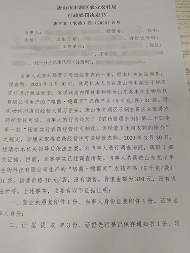 唐山市丰润区农业农村局唐丰农(农药)罚【2023】8号