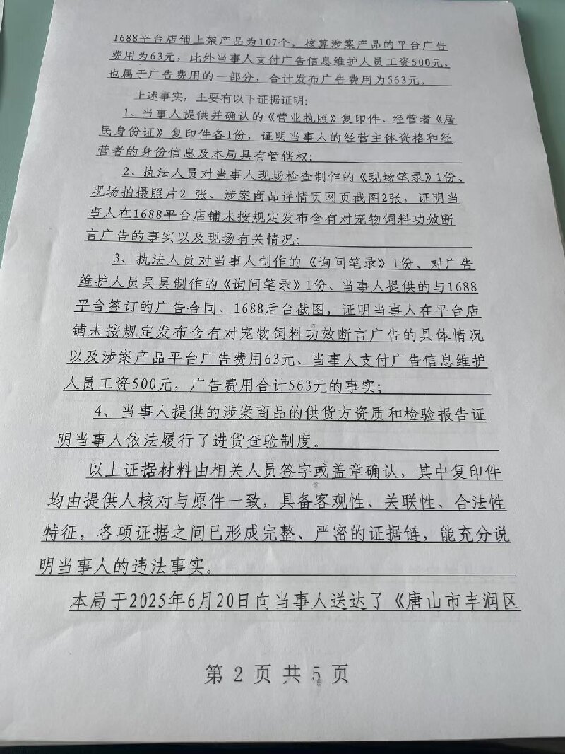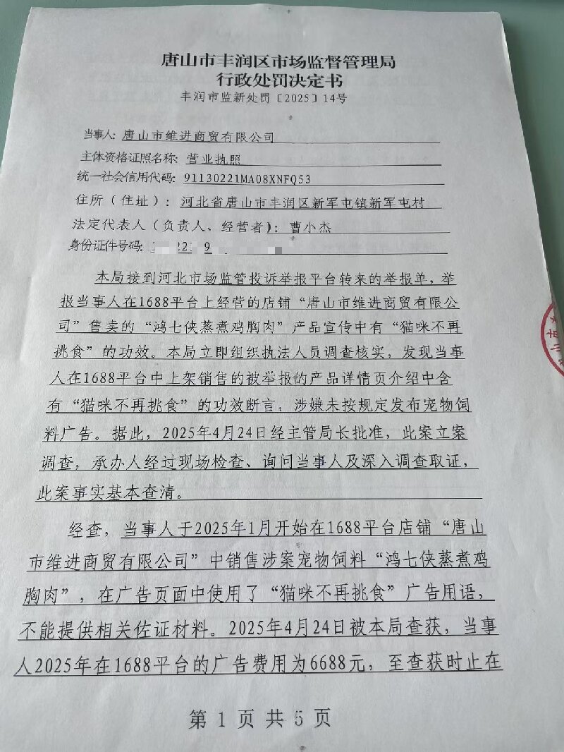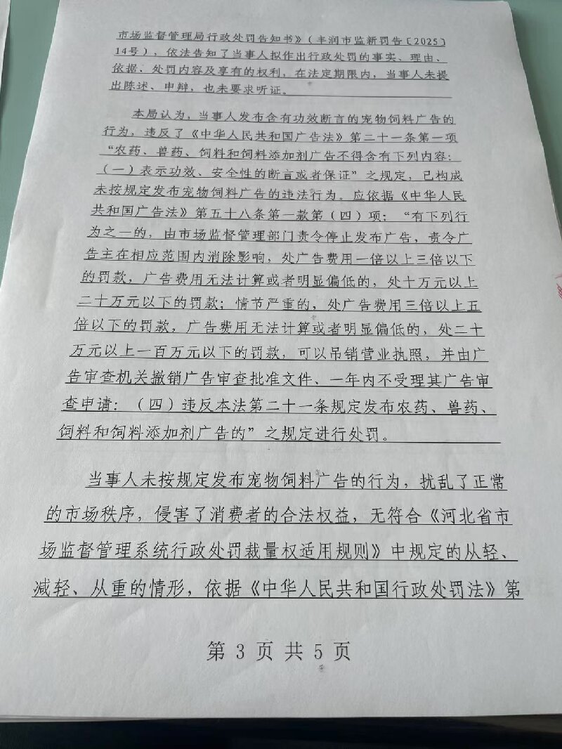 唐山市维进商贸有限公司未按规定发布宠物饲料广告案