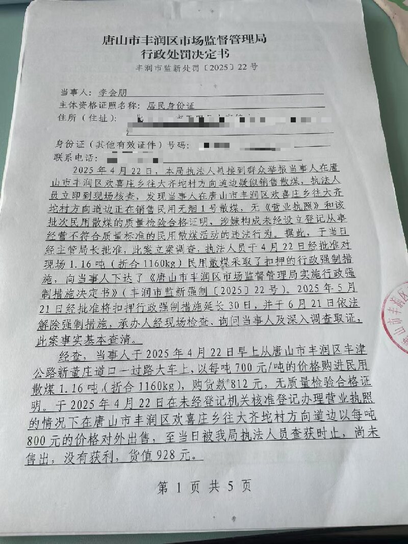 李会朋未经设立登记从事经营不符合质量标准的 民用散煤活动案