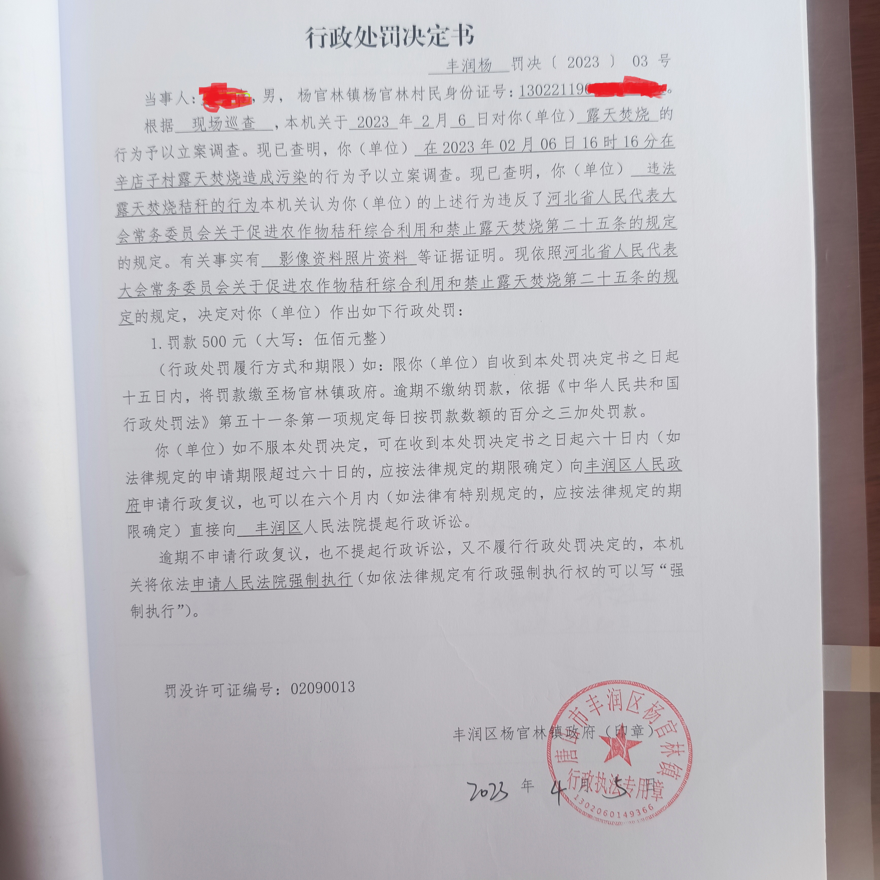 杨官林镇2023年行政处罚3号